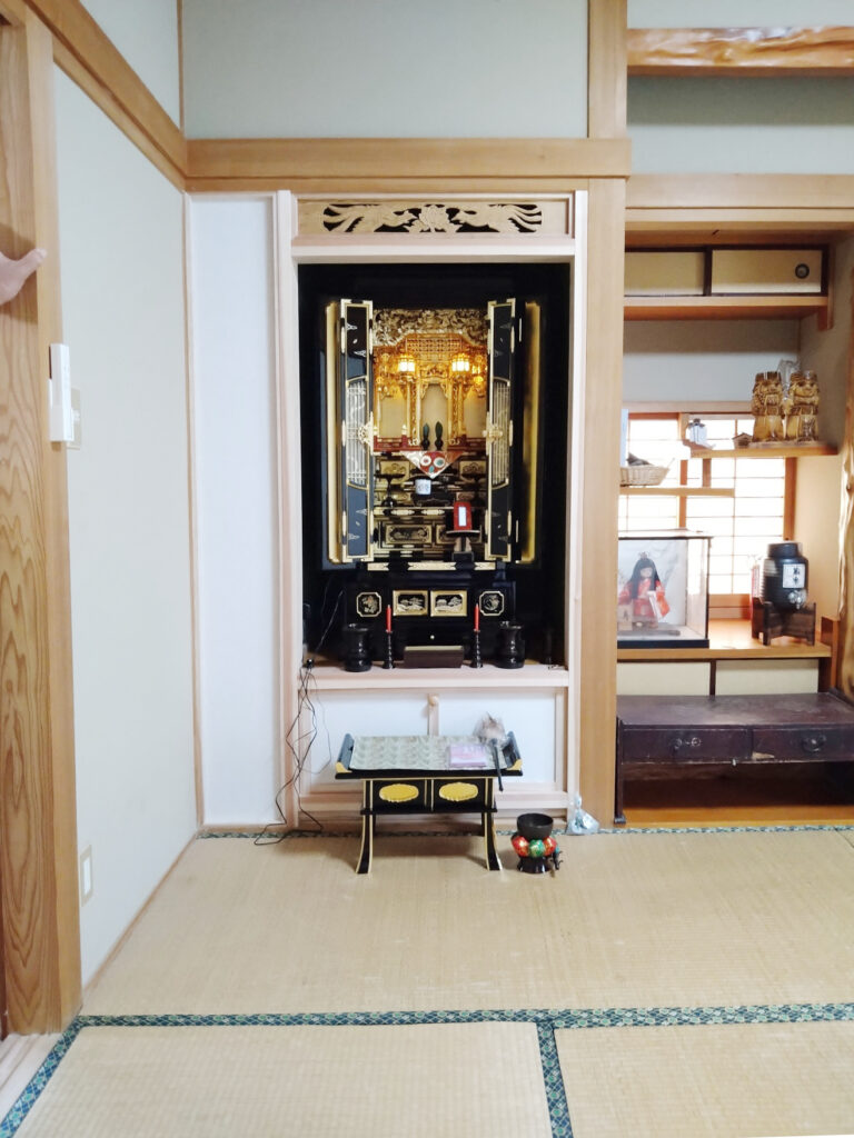 この度は姶良店にご縁をいただけましたこと心より御礼申し上げます。リフォームされるにあたりお仏壇を見に来店されました。お母さまが丸障子がついた金仏壇「光妙」を気に入ってくださりご契約となりました。納品いたしますととても喜んでくださり「これで落ち着きました」と言っていただけました。ご家族のみな様がとても明るく私も心が安らぎました。これからも末永く、よろしくお願いいたします。またお店にお立ち寄りください。