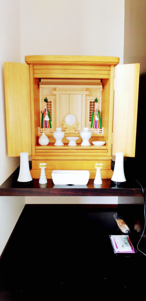 新築に合わせて神道壇のご相談に来店されました。まことにありがとうございます。家具調神道壇に決められました。それに合わせ設置場所を設計してくださいました。シンプルでモダンなデザインが新築のお部屋に合っていましたね。早くからご相談いただけ本当に良かったと思います。
