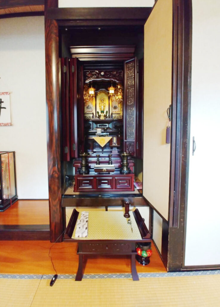 先々を考えられ、ご実家のお仏壇を供養され新しくご自宅にお迎えされました。仏間の寸法もしっかり測ってくださっていたので、ピッタリなサイズでご提案できました。たいへん気に入っていただけました。良いご縁をいただき感謝いたしております。今後とも、よろしくお願いいたします。