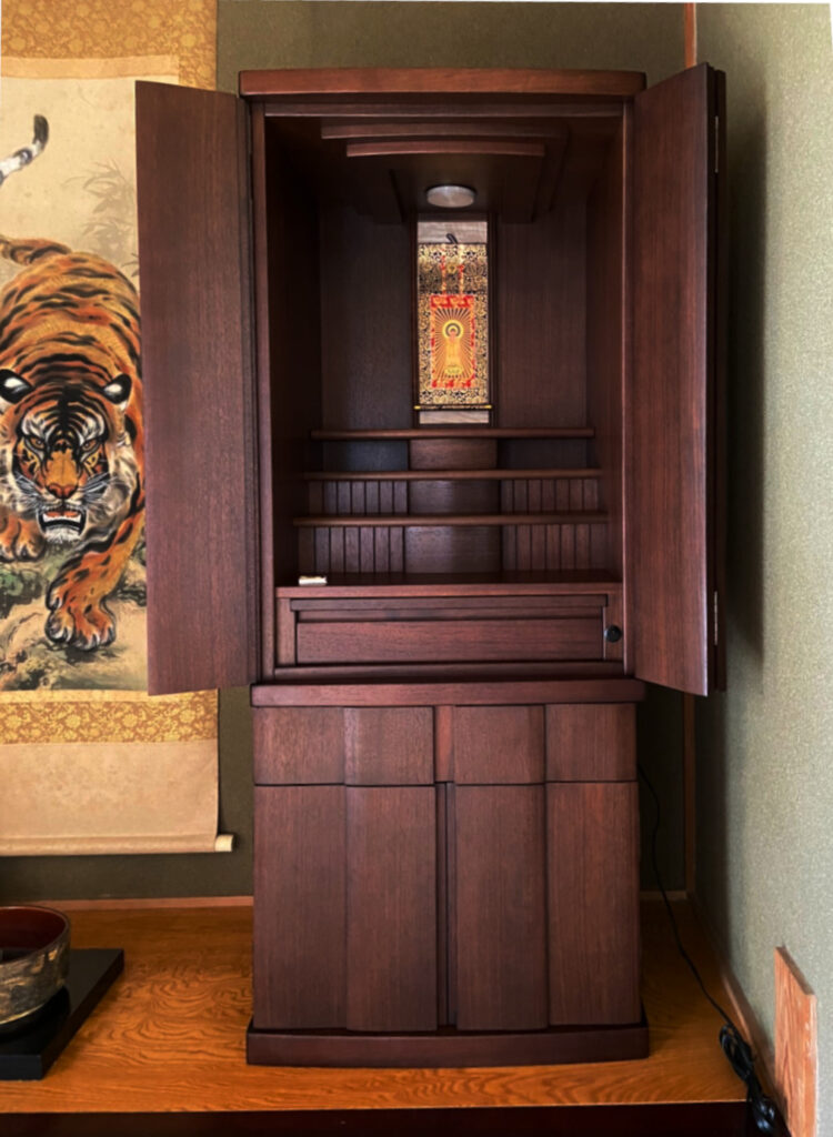 はじめは「小さな仏壇を」と来店されました。お話をいろいろ伺うと床の間がお有りとの事で、家具調仏壇をお勧めいたしましたら、たいへん気に入ってくださりご契約いただけました。この度はまことにありがとうございました。