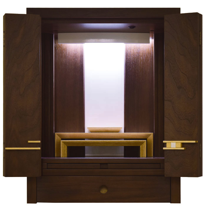 この度はお仏壇を新調いただきまして、まことにありがとうございます。マンションに引っ越されるM様。今までご実家にあったご本尊を納められるお仏壇をお探しでした。家具調仏壇を提案させていただきました。小型ながら高さも十分あり「ご本尊が綺麗に納まる」とご満足いただけました。私どもも安心いたしました。ご不明な点がございましたら些細な事でもかまいませんので遠慮なくお尋ねくださいませ。