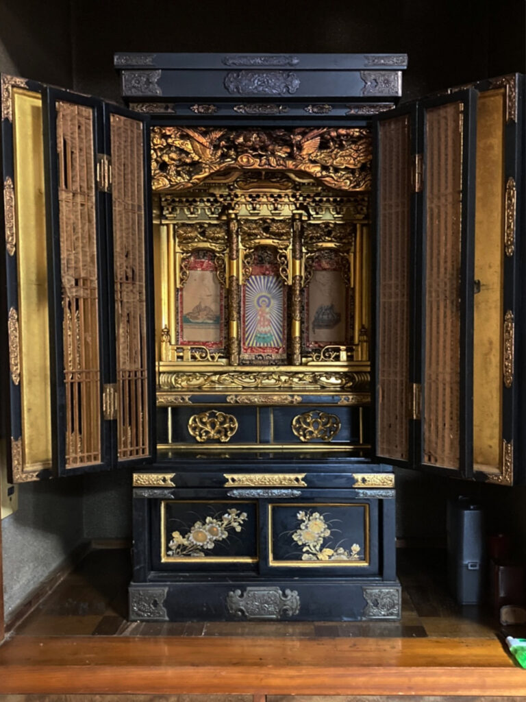 この度は大切なお仏壇の修復にかかわらせていただき、まことにありがとうございます。完成したお仏壇を納めさせていただきた際には、ご家族みな様で驚きの声とともに喜んでいただけました。私どももたいへん嬉しく思います。小さなお孫さんが成人され、さらにずっと先もこのお仏壇がご家族みな様を見守ってくれる事でしょう。