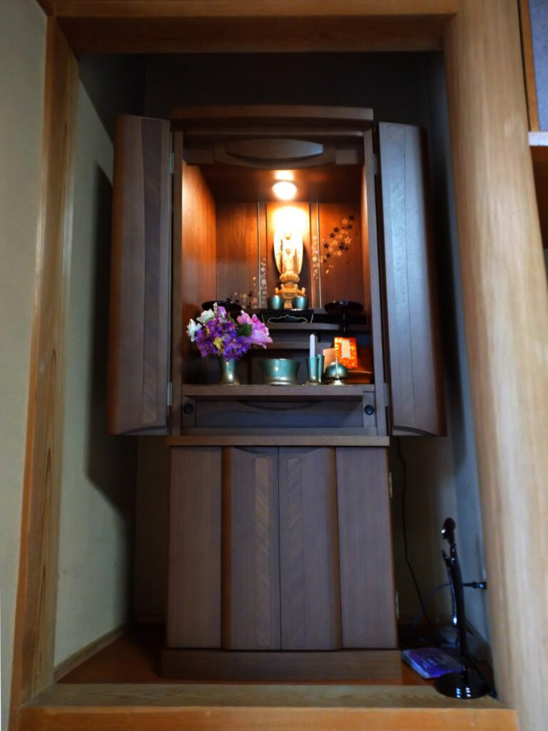 今まで仮祭壇で手を合わせてこられたY様。「そろそろ仏壇を準備しようと思って」とお寺様からのご紹介で来店されました。お仏壇選びもお寺様からのアドバイスを受け選ばれました。喜んでいただけました。ありがとうございました。