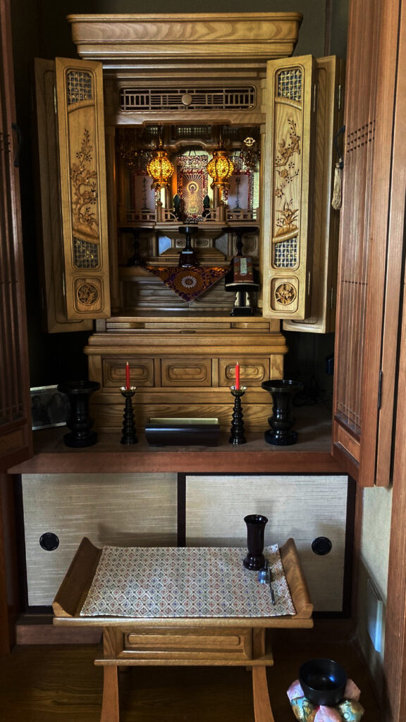 奥さまを亡くされたT様。「初盆までには仏壇を準備したい」と来店されました。唐木仏壇の材質・仕様でたいへん迷われましたが、仏間が明るくなり表情が優しく柔らかい「桜山」を選ばれました。お仏壇を眺めながら「床の間の雰囲気と良く合ってよかった」とのお言葉をいただき、嬉しく思います。これからもどうぞ、よろしくお願いいたします。