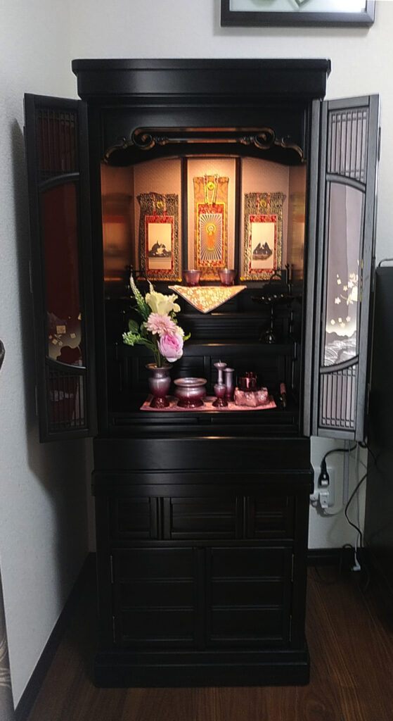 「そろそろ自分のあとのことを考える年齢になった」と旦那様とご友人と一緒に来店されました。お部屋の色と統一したピッタリなモダンな家具調仏壇を選ばれました。これから永く手を合わせていただければさいわいです。何かお困りのことがありましたら、お気軽にお声掛けください。ありがとうございました。
