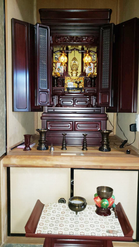 最初のご来店時はあまりお時間がなかったようで慌ただしく弊社のカタログと仏間採寸表をお渡ししただけになってしまいましたが、後日再来店くださいました。仏間の採寸もされていました。カタログ掲載のお仏壇を気に入っていただき、たいへん嬉しく思います。対応にも満足していただいたようで何よりです。今回お納めさせていただいたお仏壇を亡きご主人との会話の場、心の拠り所とされ日々をお過ごしください。この度はご縁をいただき、まことにありがとうございました。