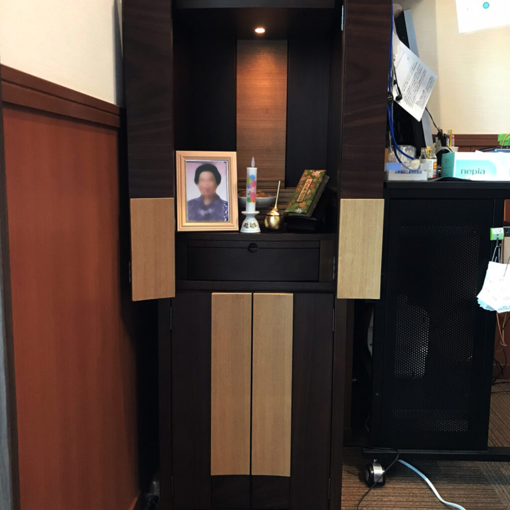 お父さま娘さま、お二人で来店されました。「施設に持っていけるお骨がはいるもの」とのご希望がありました。家具調仏壇を選ばれました。とてもお部屋の雰囲気に合っていましたね。また近くにいらした際は、ぜひお店にお立ち寄りください。