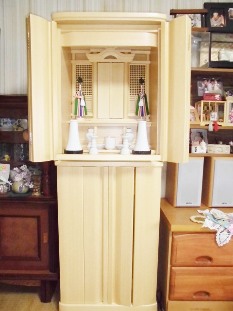 神棚はお持ちでしたが「ご先祖様」「故人」を祀る祖霊舎(神道壇)をお持ちでなかったY様。今回ご用意させていただきました。まことにありがとうございました。亡きご主人様を偲び、みな様が心静かに手を合わすお手伝いができました事を誇りに思います。