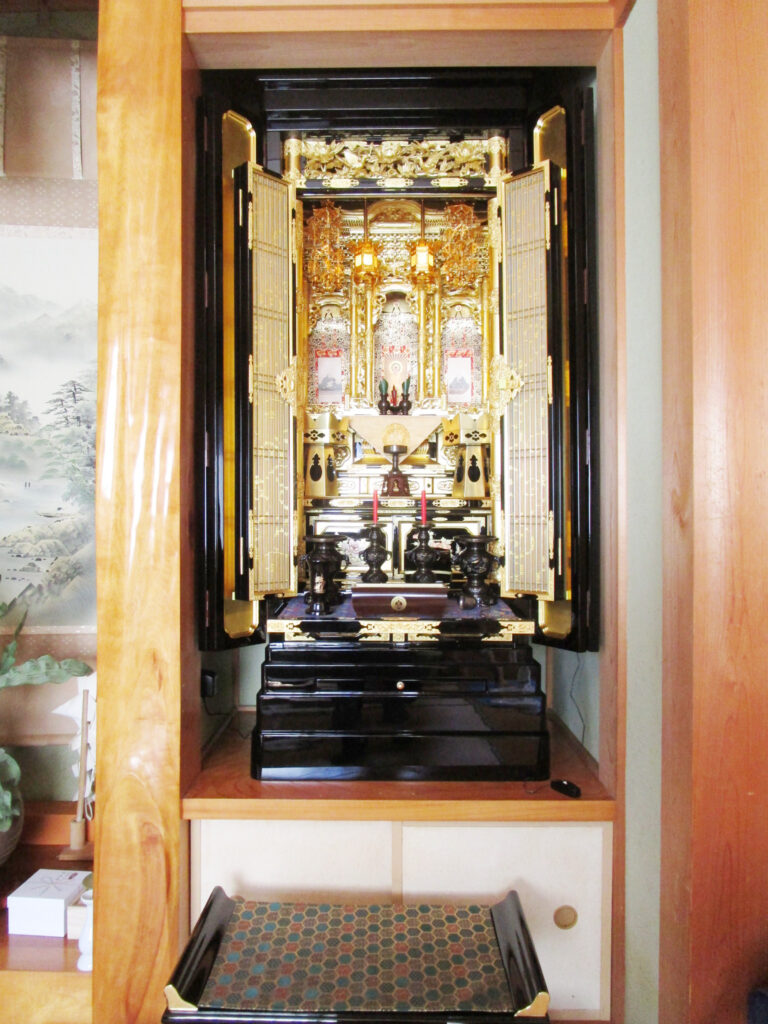 お母様を亡くされお参りに伺わせていただきました。後日ご相談に来店くださいました。仏間の大きさもご確認いただいておりましたので、綺麗に納まるお仏壇をご提案できました。初めてお仏壇を購入されるとの事で、色々ご質問いただき安心いただけたと思います。これからも末永いお付き合いを、よろしくお願いいたします。この度はご縁をいただき、まことにありがとうございました。