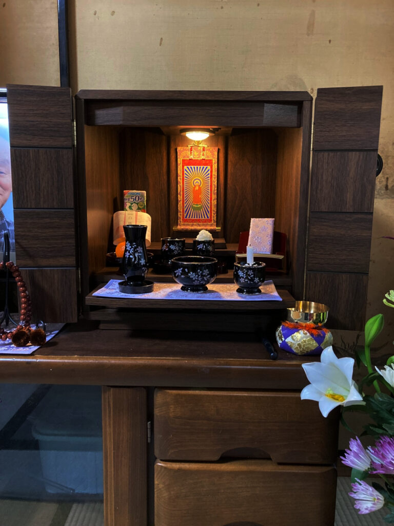 この度はご縁をいただき、まことにありがとうございました。お仏壇とチェストの色合いがピッタリ合っていましたね。T様娘様の故人様への想いがたくさんつまったお仏壇です。「お父さん良かったね」と話しかけられていたお姿が心に残っています。これからもたくさんお話をされてください。