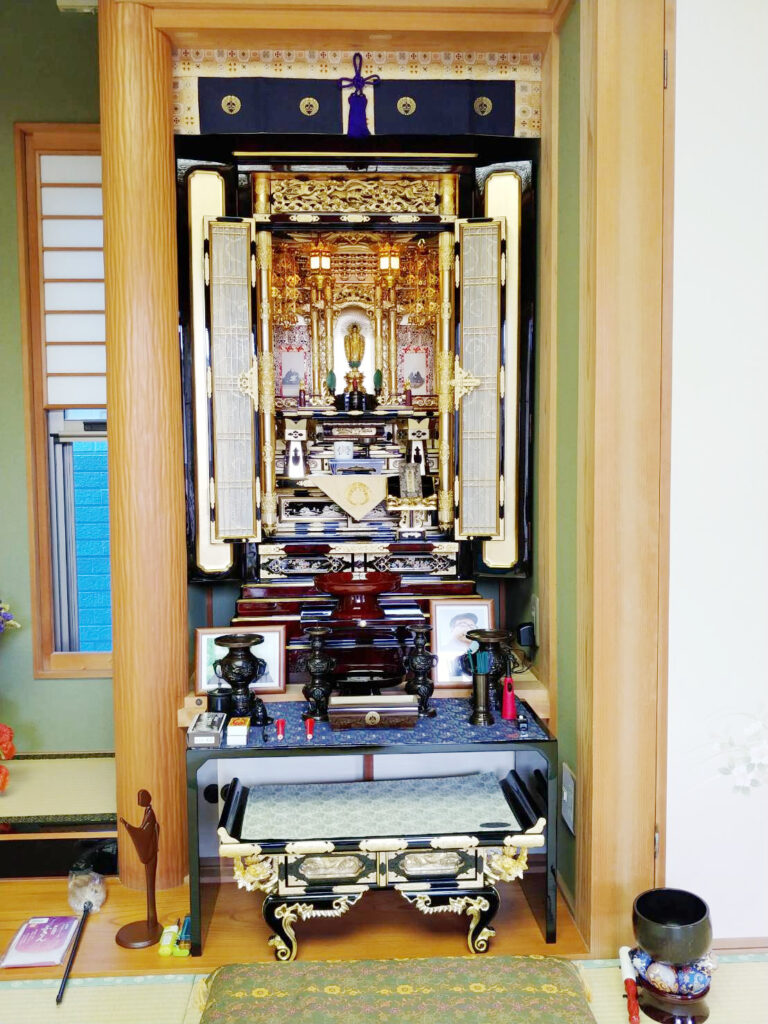 以前より「仏間に対して仏壇が少し小さい」と気になっておられたそうです。今回、お父様のために仏間に合ったサイズのお仏壇に買い替えられました。杢出の豪華さを、たいへん気に入ってくださり、ご縁を頂く事ができました。今後とも末永いお付き合いを、よろしくお願いいたします。