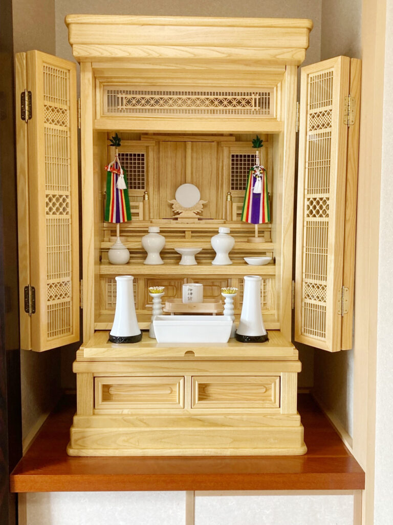 この度はご縁をいただき、まことにありがとうございました。「50日祭前に神道壇を準備したい」とのご相談で娘さんとお越しくださいました。ゆくゆくは娘さんが継がれるとのお話で、娘さん宅の神間に入るサイズで選ばれました。亡きご主人様も安心して、ご家族を見守ってくださる事と思います。