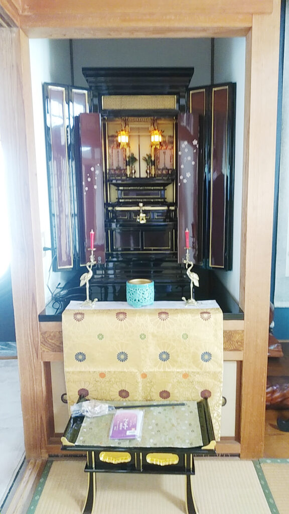 息子さんにカタログをお渡ししました。さっそくご家族で選んでくださり、翌日には父娘でご来店くださいました。敷板などにお父様のこだわりを込められました。綺麗に納まったお仏壇をご覧になって、たいへん喜んでいただけ私どもも嬉しく思います。これをご縁に、これからもよろしくお願いします。