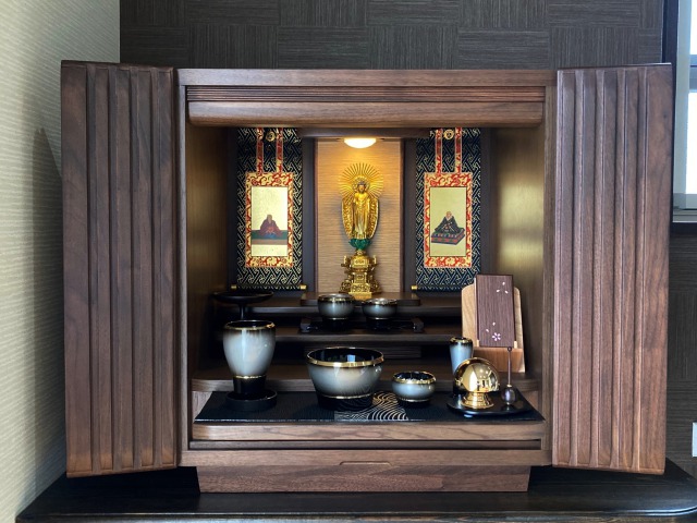 何度も足を運んでくださいました。まことにありがとうございました。家具調仏壇を選ばれました。落ち着いた雰囲気のお宅に良く合っていましたね。喜んでいただけ私共も嬉しく思います。子供さん方がおリンを鳴らして手を合わされるお姿が目に浮かびます。これからもお気軽にお立ち寄りください。