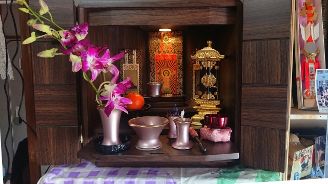 お母様を亡くされたF様のお宅へお仏壇引き取りのお依頼をうけ、お伺いいたしました。「位牌だけは持っておきます」とおっしゃったので「小さい仏壇で良いのでお位牌を入れてください」とお話したところ、後日来店くださり塗モダン仏壇をご購入くださいました。御供養の説明をいろいろさせていただいたところ、たいへん熱心に聞いてくださいました。「今後しっかりと手を合わせていきます」と言ってくださいました。少しでもお役にたてたこと嬉しく思います。