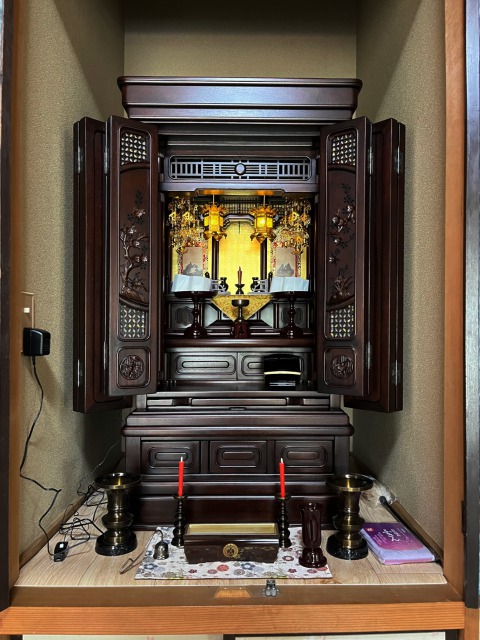 最初は娘さん息子さんが来店されました。後日、お父様も一緒に来られ仏間のサイズに合わせ唐木仏壇をご購入されました。故人様の綺麗なお写真を拝見いたしました。これから心穏やかに手を合わせていただければと思います。この度はご縁をいただき、まことにありがとうございました。