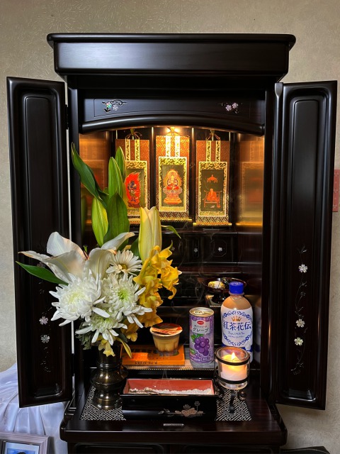 ご夫婦で来店されました。下台の中にお骨を収納できる家具調仏壇をご契約いただけました。いつまでもご一緒に居ることができ、とても喜んでいらっしゃることと思います。毎日手を合わせながら会話なさっていることでしょう。ご縁をいただき、ありがとうございました。
