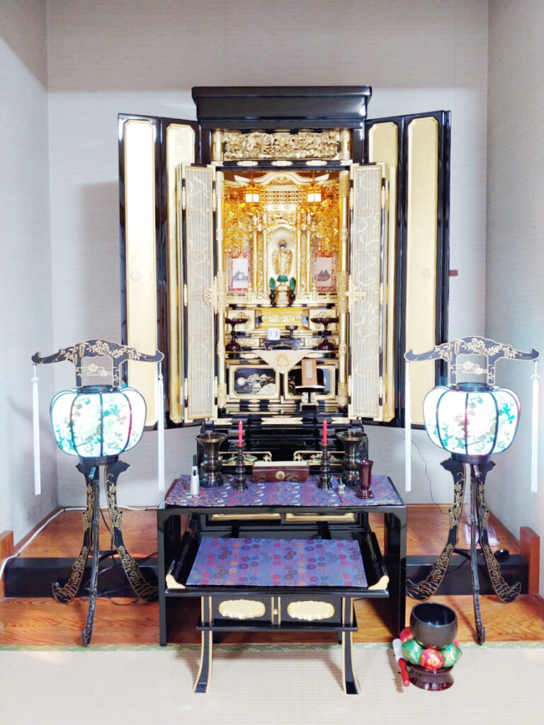 以前、仏具を買いに来店くださっていました。その際「仏壇を迎える時は、この店で購入したい」と思ってくださったそうです。大好きだったご主人様のことを、いろいろと話してくださいました。優しい奥さまが印象的でした。「主人のために精一杯のことをしてあげたい」と息子さんと選ばれたお仏壇を迎えられました。今後ともよろしくお願いいたします。