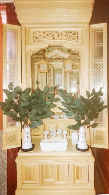 先祖棚をお持ちでしたが「神道壇に買い替えたい」とのことでした。彫刻の綺麗な神道壇を気に入ってくださいました。大戸に特注で家紋を入れられました。世界にひとつしかない神道壇になりましたね。ご先祖様達も、さぞお喜びのことと思います。ご縁をいただき感謝いたしております。