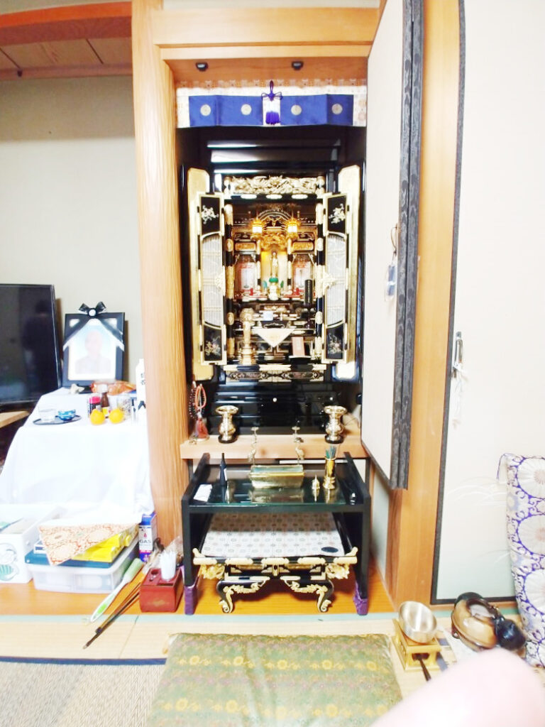 過去帳を購入に来店された際に、修復のご案内をいたしましたら、お見積もりのご依頼をご連絡くださいました。ご自宅に訪問し宗派によるお仏壇の違いを、ご説明いたしましたところ「宗派に合ったお仏壇を迎えたい」と、ご購入を決断くださいました。今回のご縁、誠にありがとうございます。今後とも末永いお付き合いを、よろしくお願いいたします。