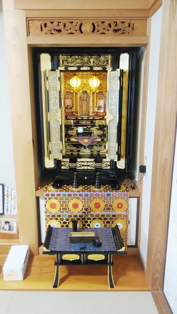 ご自宅にお仏壇を迎えられることを決められたK様。ご実家のお仏壇は古くなっていたため新たに購入されました。ありがとうございました。仏間にピッタリのサイズで喜んでいただけました。私どもも嬉しく思います。