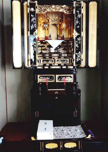 奥さま、娘さまでご来店くださいました。金仏壇を気に入ってくださいました。亡くなられたご主人が鳥がお好きだったとのことで、障子にメジロの蒔絵を特注で描かせていただきました。たいへん喜んでいただけ、嬉しく思います。