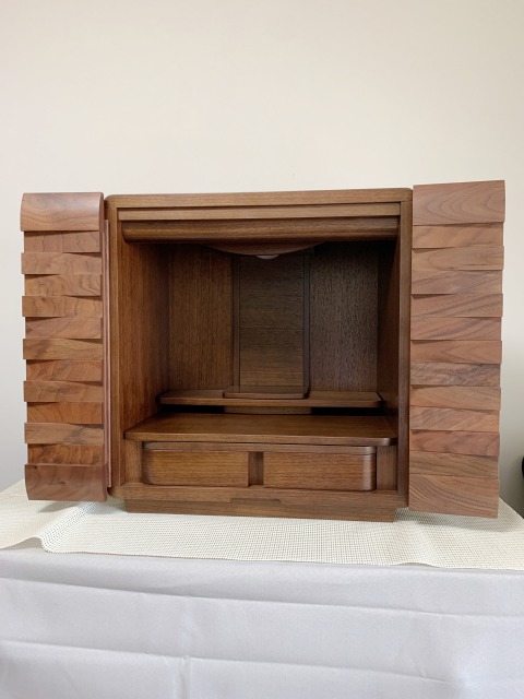 「高齢の母が世話をするので、小さな仏壇に買い替えたい」と来店されました。今までお使いだったお仏像は、そのままお祀りしたいとのことでしたのでサイズが合う家具調仏壇をご提案いたしましたら、たいへん気に入っていただけ、ご契約くださいました。私と地元が同じでしたので、地元のお話もでき楽しい時間となりました。ご縁をいただき、誠にありがとうございました。