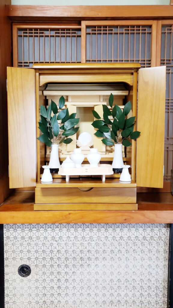 この度は「佛壇の古屋鋪 都城店」へのご縁をいただき、ありがとうございました。設置される場所のスペースに合わせ家具調の神道壇を選ばれました。とても綺麗に納まりました。ご夫婦で喜んでくださいました。嬉しく思います。今後とも末永いお付き合いを、よろしくお願いいたします。