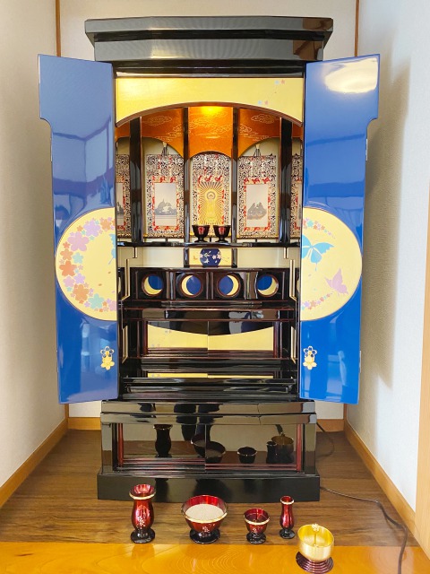 お父さまが娘さんのお宅へ、お仏壇をご用意されました。「娘の家族が日常の生活での感謝を仏壇の前でできるように」と、お父様が話されていました。娘さんご家族も「とても素敵な仏壇です」と大喜びされていました。私たちもたいへん嬉しかったです。ありがとうございました。