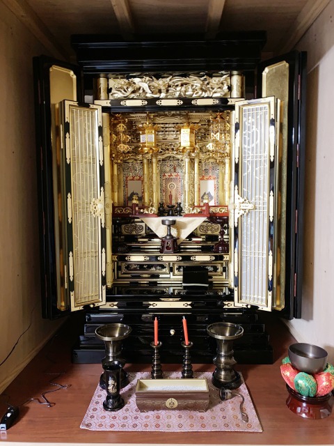 お義母様を亡くされ春に、ご夫婦で来店されたのが最初でした。その際は「仏間工事をして落ち着いたら、また来ます」とおっしゃいました。先日、再来店されました。仏間のサイズに合った金仏壇を、ご提案すると気に入っていただけました。お仏間にお仏壇が入り安心されたご様子でした。今回のご縁、誠にありがとうございました。
