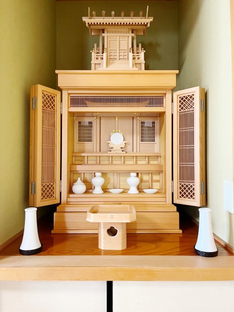 お母様のための神道壇を子供様方が来店され選ばれました。お母様も気に入ってくださいました。お札を祀るための神棚も一緒に揃えられました。ご先祖様もお喜びのことと思います。何かございましたら、お気軽にご連絡ください。ご縁をいただき、ありがとうございました。