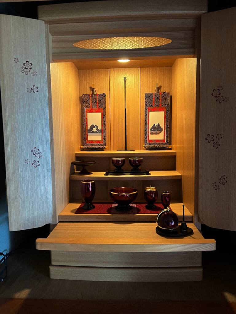 この度は当店を、お選びいただき誠にありがとうございます。ご自宅の仏間にピッタリな家具調仏壇でした。お道具は娘様と相談されながら決められました。とても素敵なお仏壇になりましたね。何かご不明な点などございましたら、お気軽にご連絡ください。お待ちしております。