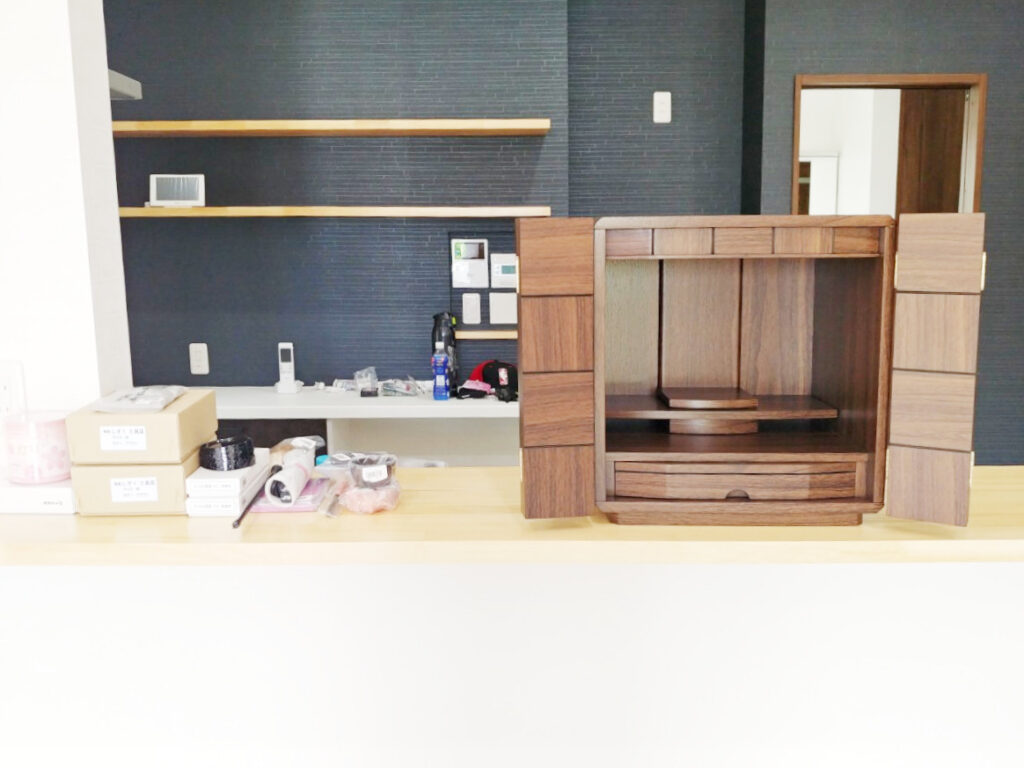 「新築を機に仏壇を迎えたい」と、ご家族で来店されました。「安置予定のリビングにピッタリなデザインだ」と家具調仏壇を気に入っていただけました。ご縁をいただき、ありがとうございました。