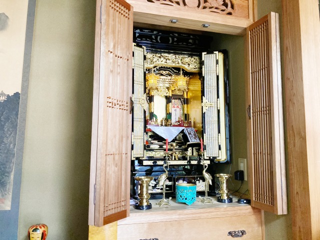 この度のご主人のご逝去、謹んでお悔やみ申し上げます。仏間にとても良い感じで納まりました。喜んでいただけ良かったです。仏具もできるだけ正式なものをご用意させていただきました。お墓の文字彫りのほうは、また終了次第ご連絡させていただきます。良いお盆をお迎えくださいませ。