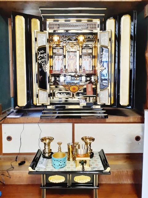 仏壇の買い替えをお考えでした。ご兄弟ご夫婦4人でお越しくださいました。仏間の寸法をキチンと測ってきてくださっていたので、スムーズにご案内できました。金仏壇「満月」を気に入ってくださいました。本当にありがとうございました。 合掌