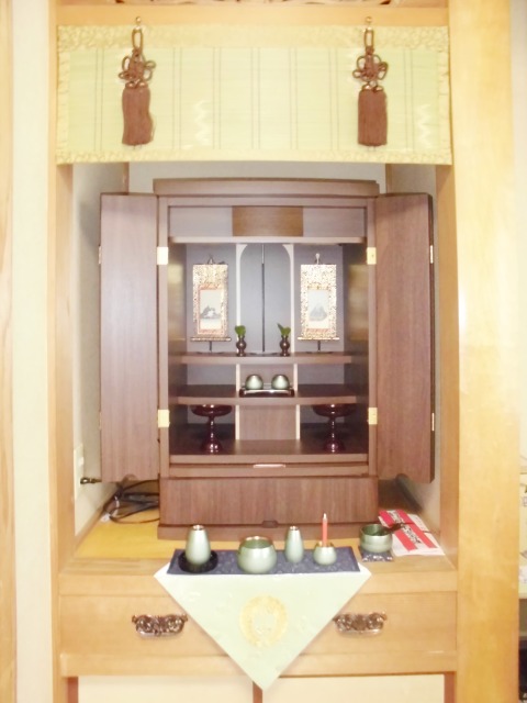 亡きご主人様のために奥さまが選ばれたお仏壇です。和室の仏間にちょうど良い色合いで「お部屋が和んだ」と喜んでいただけました。これからも私たちでお役にたてることがあれば、精一杯させていただきます。本日は誠にありがとうございました。