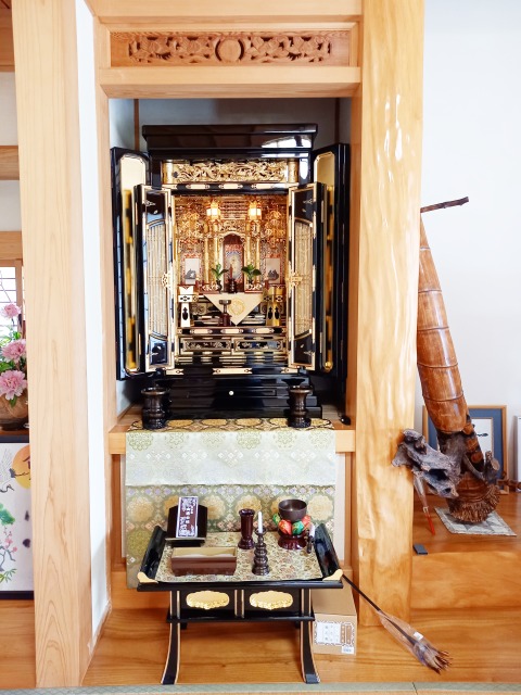 こちらこそ娘さんがいらっしゃる間に納めることができて良かったです。M様は仏壇の納品を最初から最後まで見守られ「綺麗に入って良かった」と喜んでくださいました。これから末永く手を合わせていただければ幸いです。