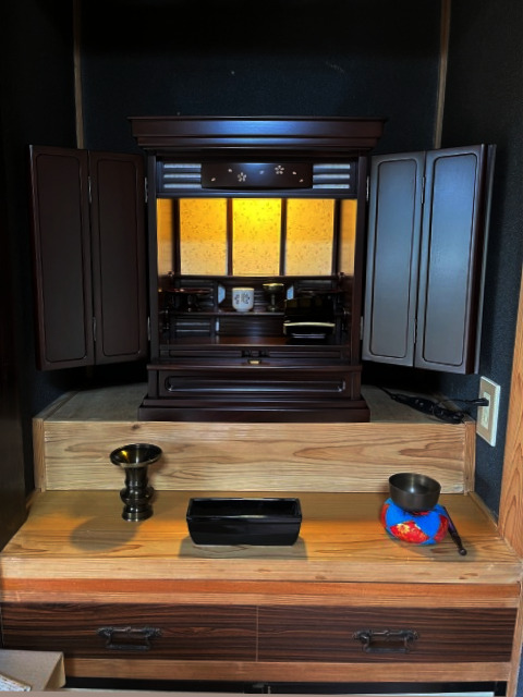 小形のお仏壇を探しに来店されました。いろいろ見て回られ紫檀色の小型仏壇を気に入られました。毎日のお勤めやおそうじも手軽にできますので末永く大事にしてくださることと思います。何かございましたら、いつでもご連絡くださいご。縁をいただき、ありがとうございました。