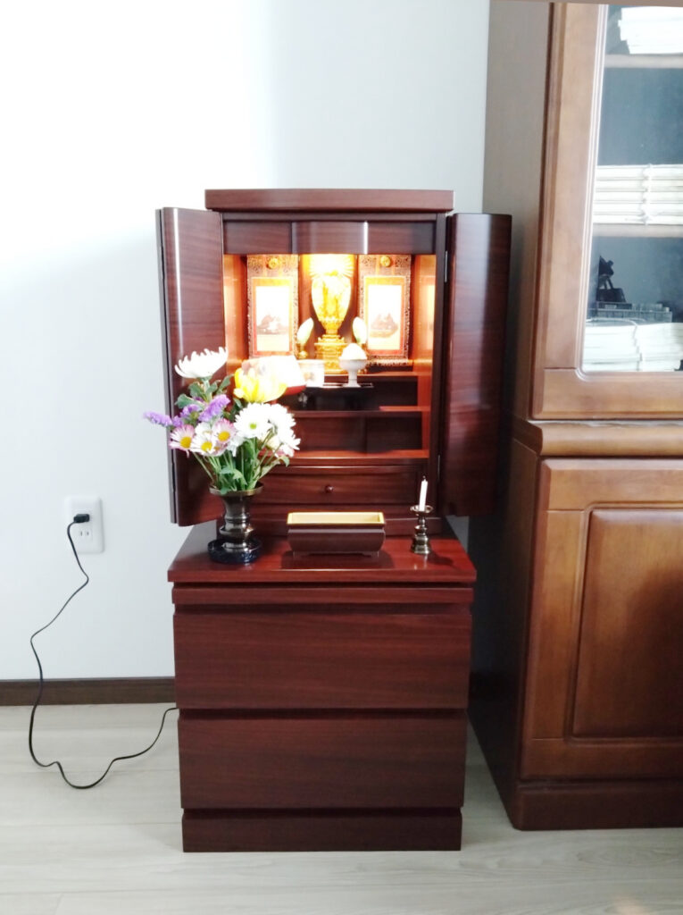 今日、入仏式が終了。おかげ様で新居にて心置きなく新しいお仏壇をお迎えできました。仏教のしきたりや鹿児島県のしきたりなど知らないことが多い私共夫婦でしたが、親切ていねいに対応していただきました。ありがとうございました。おかげ様で気に入った商品がみつかりました。