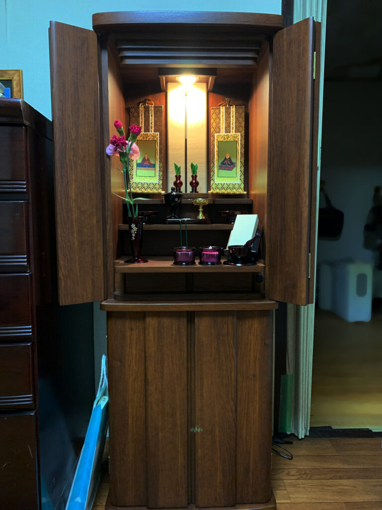 ご主人を亡くされたS様。当店とご自宅が近いこともあり今までもお線香などをご購入いただいておりました。はじめは「小さなお仏壇で・・・」とおっしゃっていましたが家具調仏壇を購入されました。「良い仏壇に出逢えてよかったです」と言っていただけ嬉しかったです。今後ともよろしくお願いいたします。