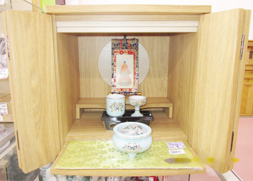 「実家の仏壇は大きすぎるので自分の家に置く小さなものを」と来店されました。ご案内した家具調仏壇に決めてくださいました。私の両親の里の御出身でご縁を感じました。この度のご来店ご契約、まことにありがとうございました。