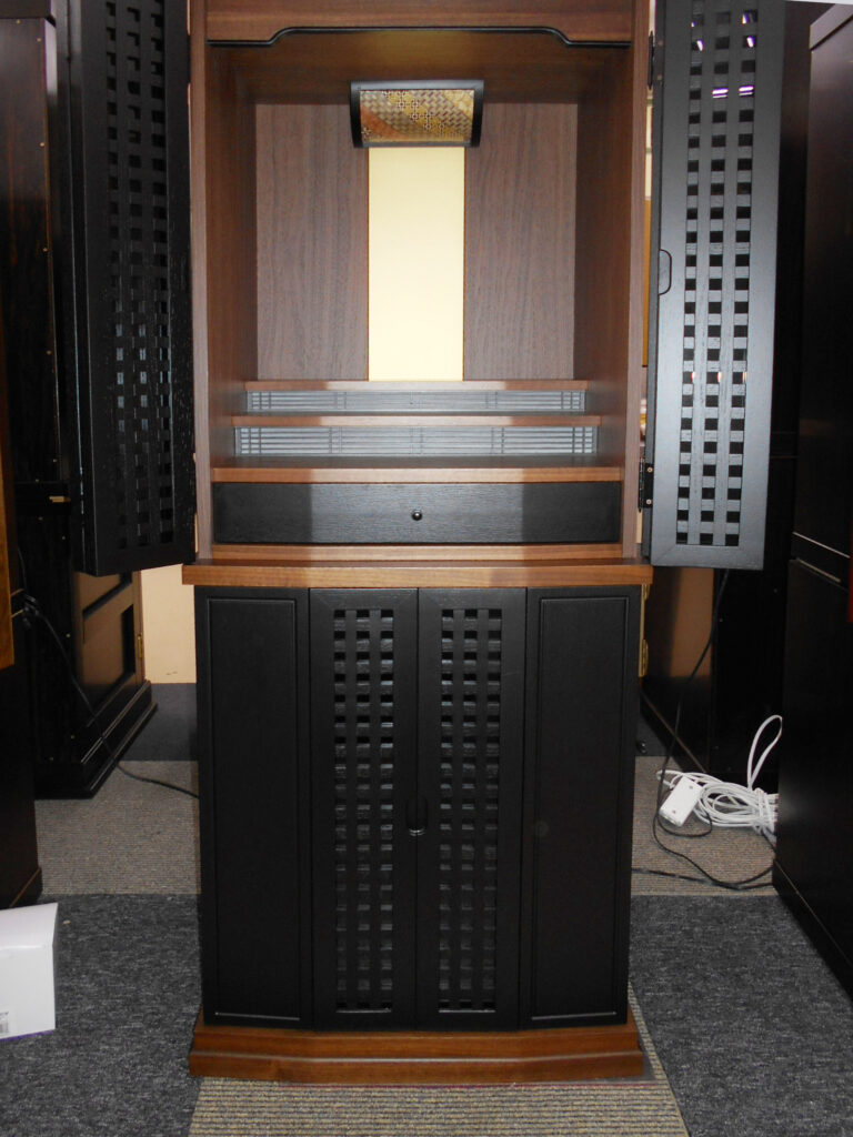 「いろいろ聞きたいことがある」と、ご夫婦で来店されました。ありがとうございました。その日のうちにお仏壇の下見もしてくださり、ちょうど売り出しの最終日でお値引きもできました。本日お届けさせていただきました。落ち着いた色のお仏壇に明かりを灯しますと、いちだんと映えましたね。これをご縁に末永くよろしくお付き合いくださいませ。