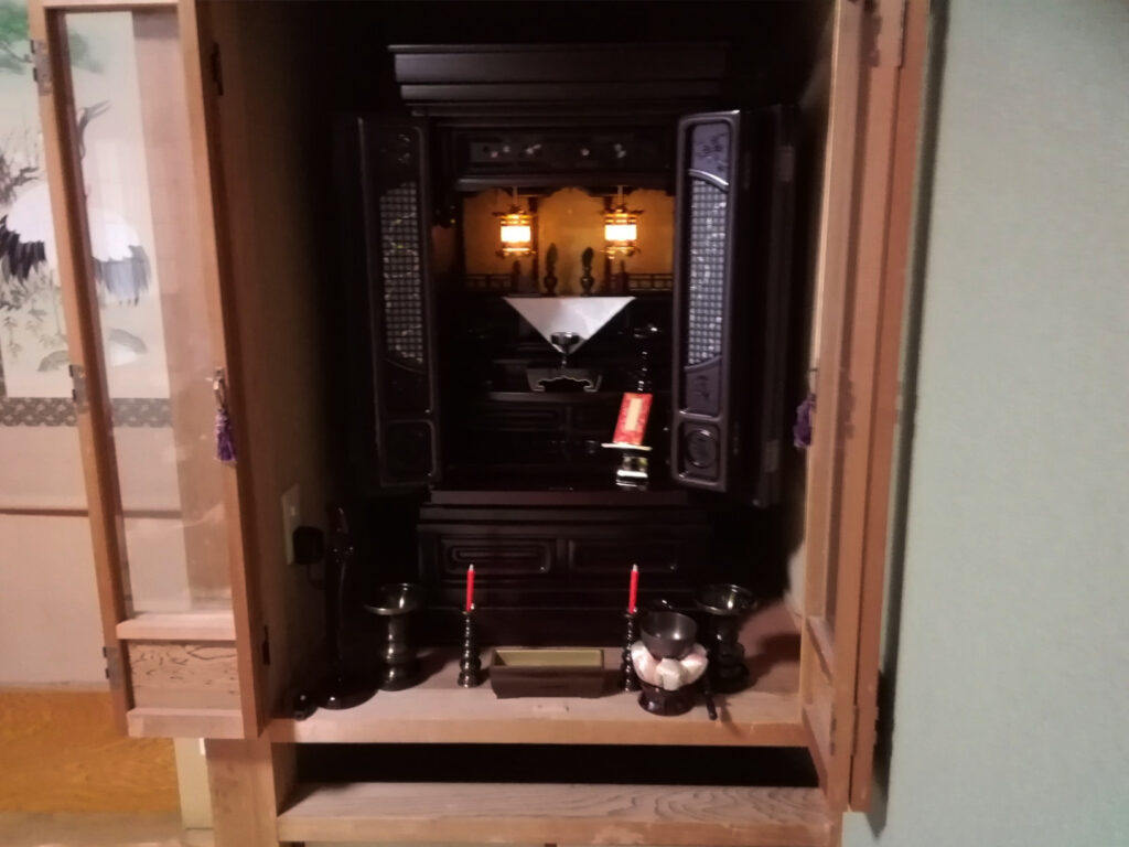 ご弔問でお伺いした際「子供たちと仏壇の準備を考えている」と話してくださいました。伊集院本店にご来店くださり、唐木仏壇を選ばれました。仏間にピッタリと納まり「ひじょうに良かった」と言っていただけました。喜んでいただけ良かったです。ご縁に感謝いたします。