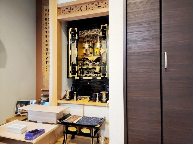 この度はご主人様のご逝去、謹んでお悔やみ申し上げます。また、いつも当店をご利用いただき、ありがとうございます。2階にすでにお仏壇を納めさせていただいてますが今回は「1階の仏間に」とのこと。3基ピックアップし、ご自宅にて選んでいただきました。ぜひ毎日のご報告をなさってください。また何かございましたら、ご相談くださいませ。