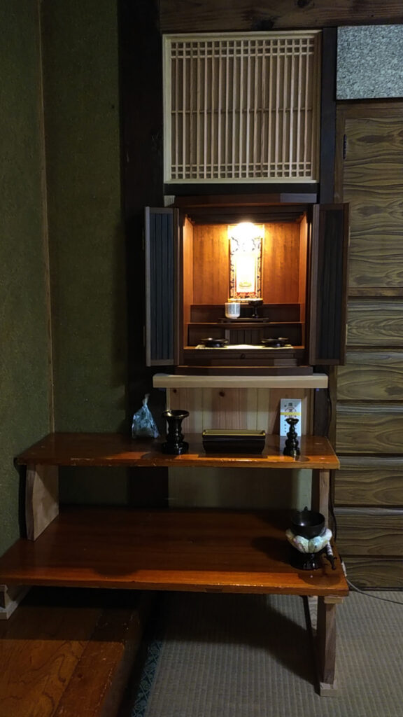 仏壇を置く場所に悩まれていました。今まで棚に置かれていました。同じ場所への設置を希望されてのご来店でした。横幅が狭かったため特殊なサイズの家具調仏壇をご用意させていただきました。設置するとどのような雰囲気になるのか実際に見ていただきました。大工さんとも打ち合わせをされ決めてられました。喜んでいただけ嬉しく思います。誠にありがとうございました。