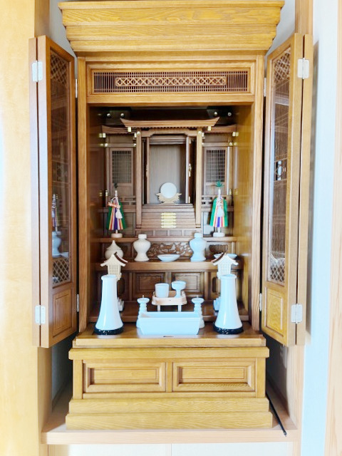 この度は祖霊舎をご購入くださいまして、誠にありがとうございます。ご夫婦で来店されました。奥さまのお母様がお亡くなりになられ、ご購入の運びとなりました。ご立派な神間に欅の祖霊舎。ご先祖様への想いを感じました。今後とも何かあれば、お気軽にお声掛けくださいませ。