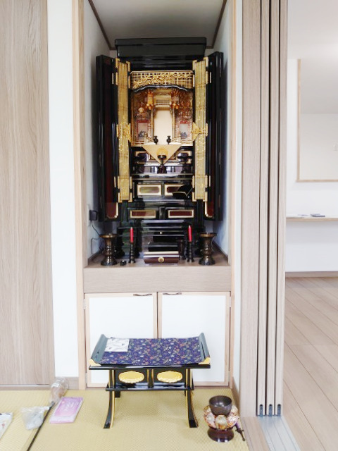初売りの際にご家族でご来店くださいました。「新築の家に仏壇を」とお考えでした。金仏壇「京型上置」を選ばれました。この度は「佛壇の古屋鋪 鹿屋店」とのご縁をいただき、誠にありがとうございました。