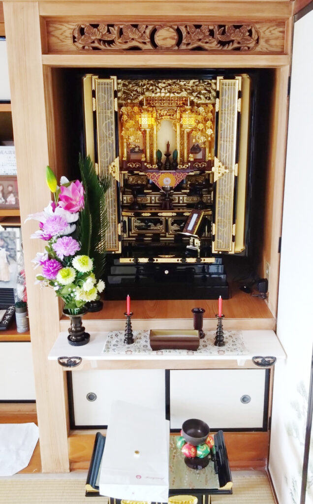 今回、金仏壇「月光京台Ⅲ型」15×33をご購入くださいました。誠にありがとうございます。奥さまのお姉様からのご紹介でした。ご家族みな様で来店されご購入くださいました。今後も何かお困りのことなどございましたら、お気軽にお声掛けくださいませ。