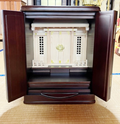 ご夫婦で来店されました。お位牌を入れる神棚をお探しでしたので神道壇のお話をさせていただきました。小型ながらもゆったりとお位牌を入れることのできる家具調の神道壇を気に入っていただけました。これから末永くご家族を見守ってくれることと思います。ご縁をいただき、ありがとうございました。
