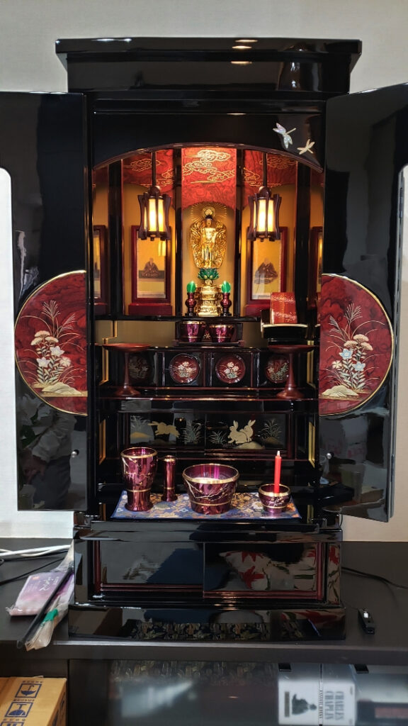 この度はお仏壇のご購入、まことにありがとうございました。飛び込みで初めてのご来店でした。塗モダン仏壇「かぐや」を一目で気に入ってくださいました。お仏具も塗モダン仏壇に合わせグレードアップしたものを選ばれました。一緒にご来店されたご友人様の後押しをあって、その場でご契約いただけました。納品させていただくと、お部屋の雰囲気にピッタリで、たいへんご満足いただけました。良かったです。これからもよろしくお願いいたします。